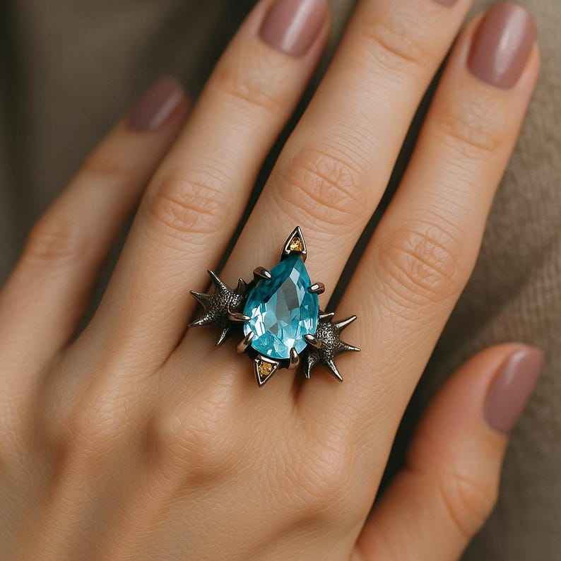 Shadowed Thorn Blue Ring Personalized Sculpted Inspired Refined