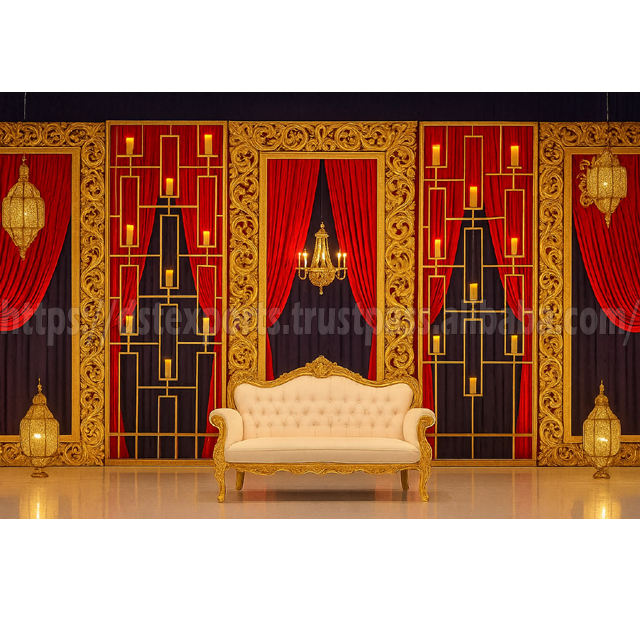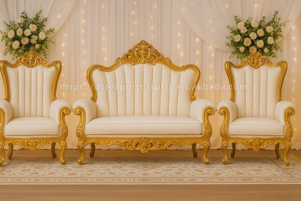 Shahi ชุดโซฟาเวทีงานแต่งงานสีทองสไตล์อังกฤษ DST เฟอร์นิเจอร์งานแต่งงานแบบดั้งเดิมของอินเดียพนักงานต้อนรับ