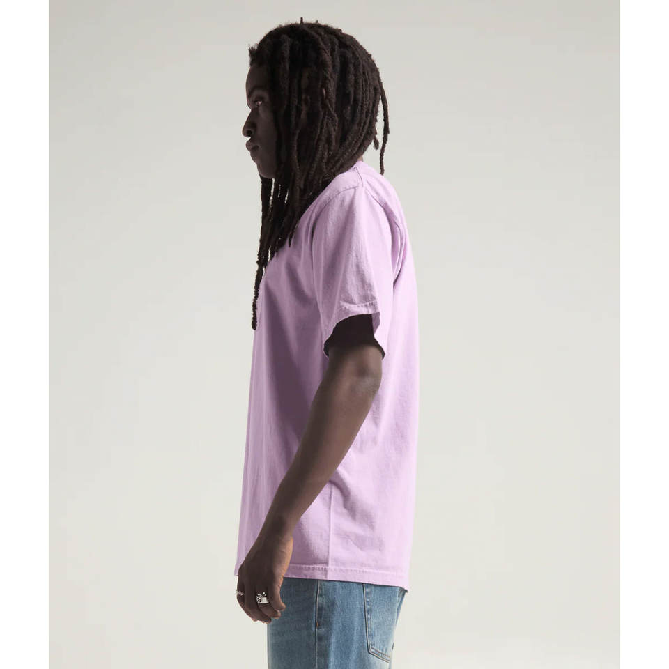 Shaka เสื้อยืดผู้ชายคอกลมผ้าคอตตอนแท้สีม่วงย้อมสีดำ
