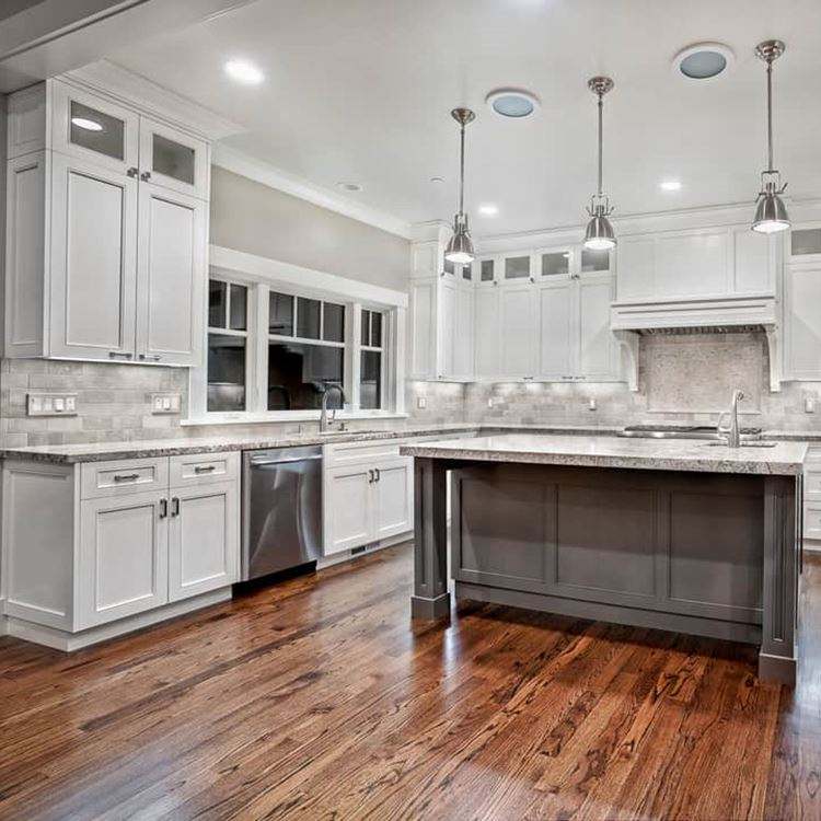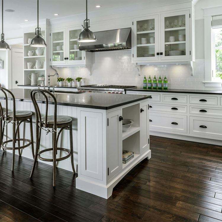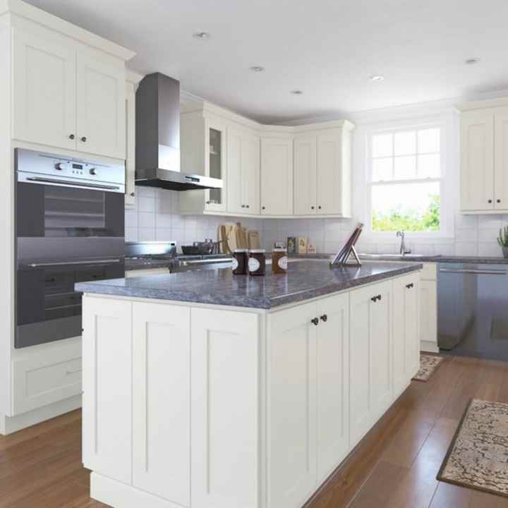 ตู้ครัวแบบโมดูลาร์ Shaker พร้อมไอส์แลนด์ เฟอร์นิเจอร์ไม้ สไตล์ยุโรป-ออสเตรเลีย สีปรับแต่งได้ ขาอะลูมิเนียมอัลลอย