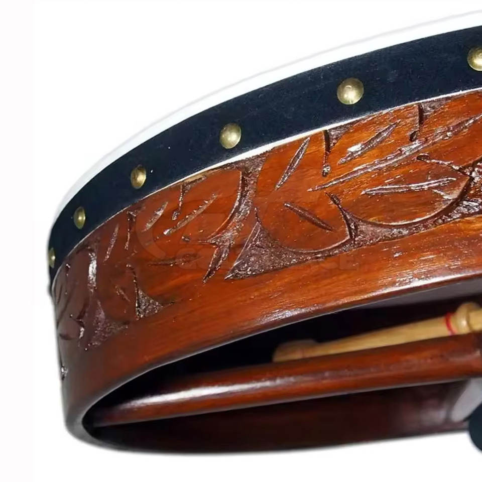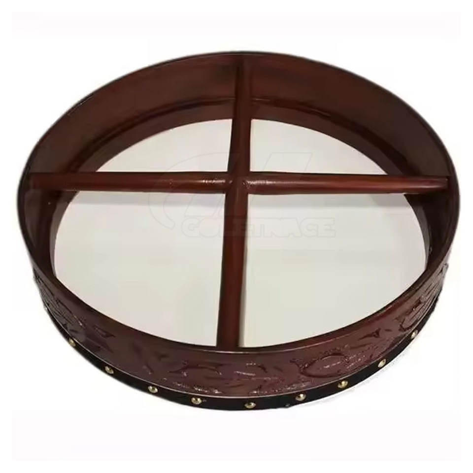 กลองชาแมนทรงกลม ดีไซน์ทำมือ เป็นมิตรกับสิ่งแวดล้อม ทำจากไม้และเหล็กกล้าไร้สนิม สำหรับการทำสมาธิและการบำบัดด้วยพลังงาน