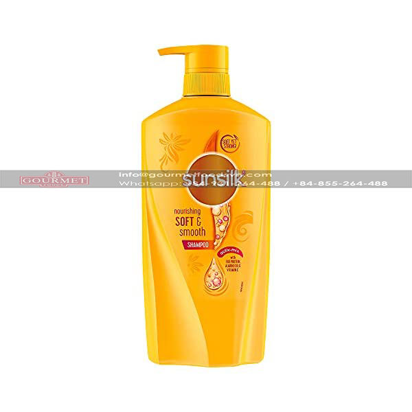 แชมพูซันซิลค์บำรุงอย่างนุ่มนวลแชมพูมีขนาด320กรัม, 650ก., 900ก., 1.4กก. และ6ก. x 12ซอง