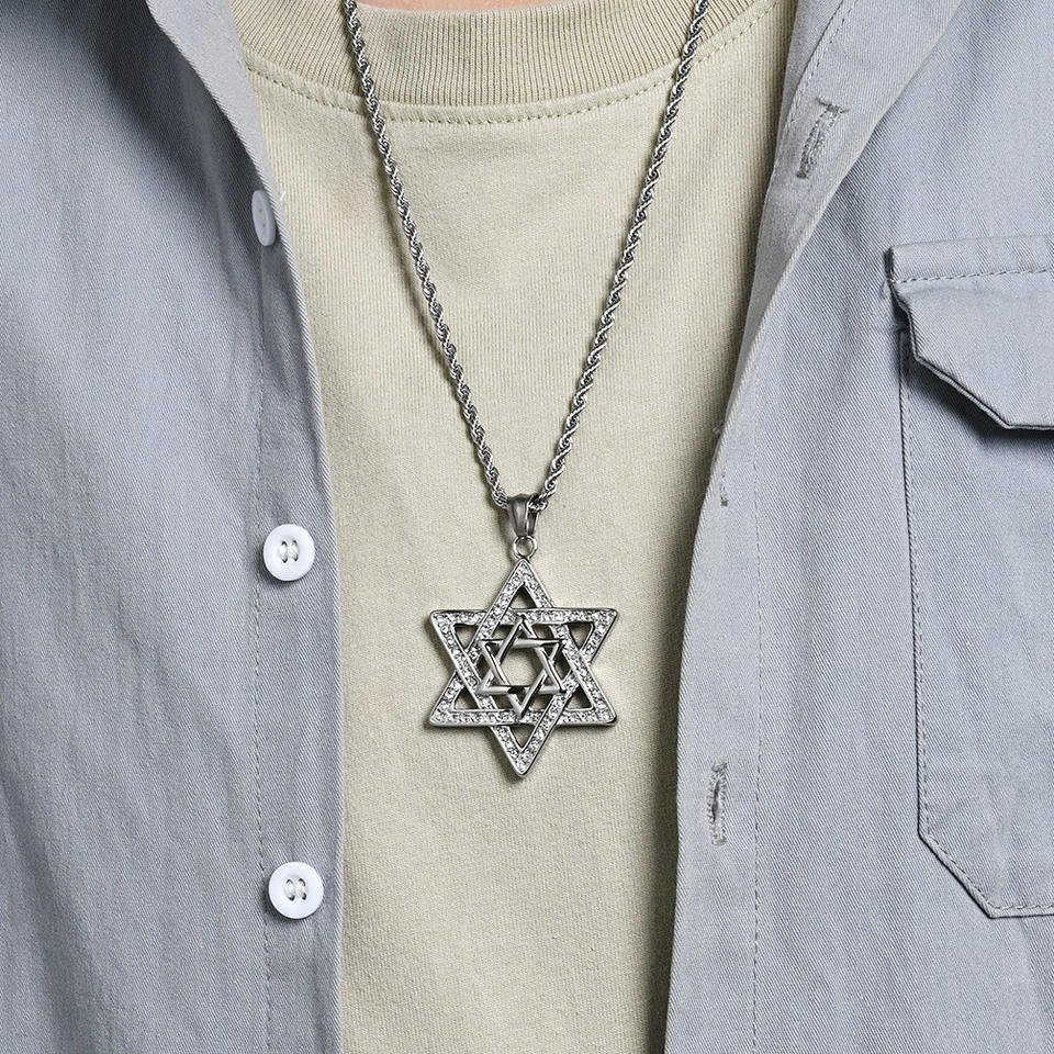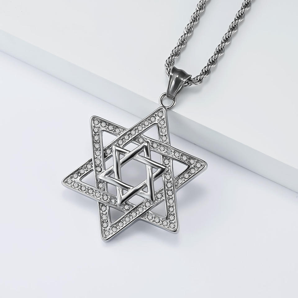 สร้อยคอรูปดาวหกแฉก Shan Hai Jewelry ชุบทอง 18K สแตนเลสประดับเพชรเต็มเม็ด สไตล์ฮิปฮอป จี้รูปดาวเดวิด