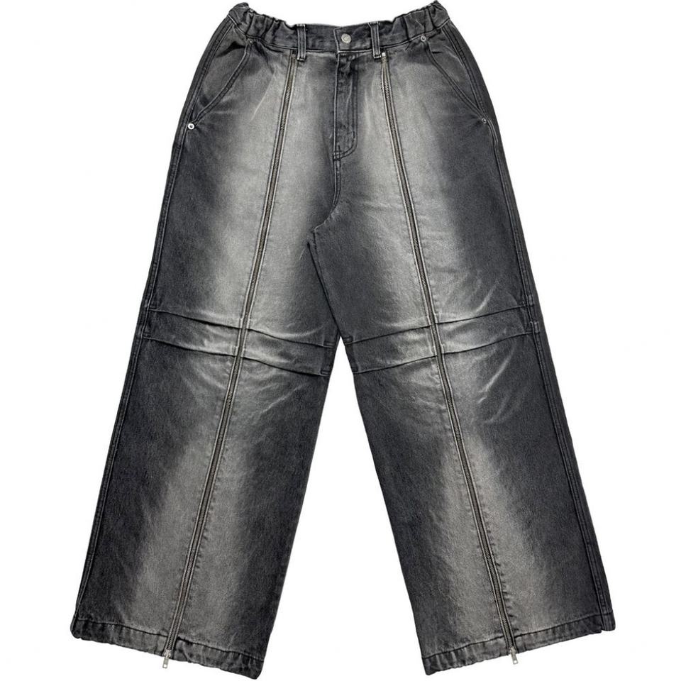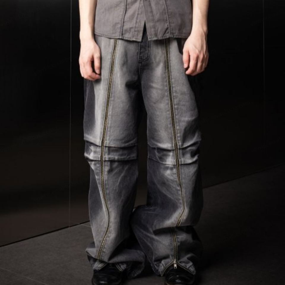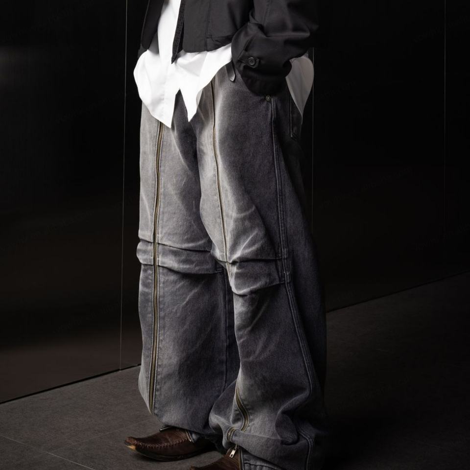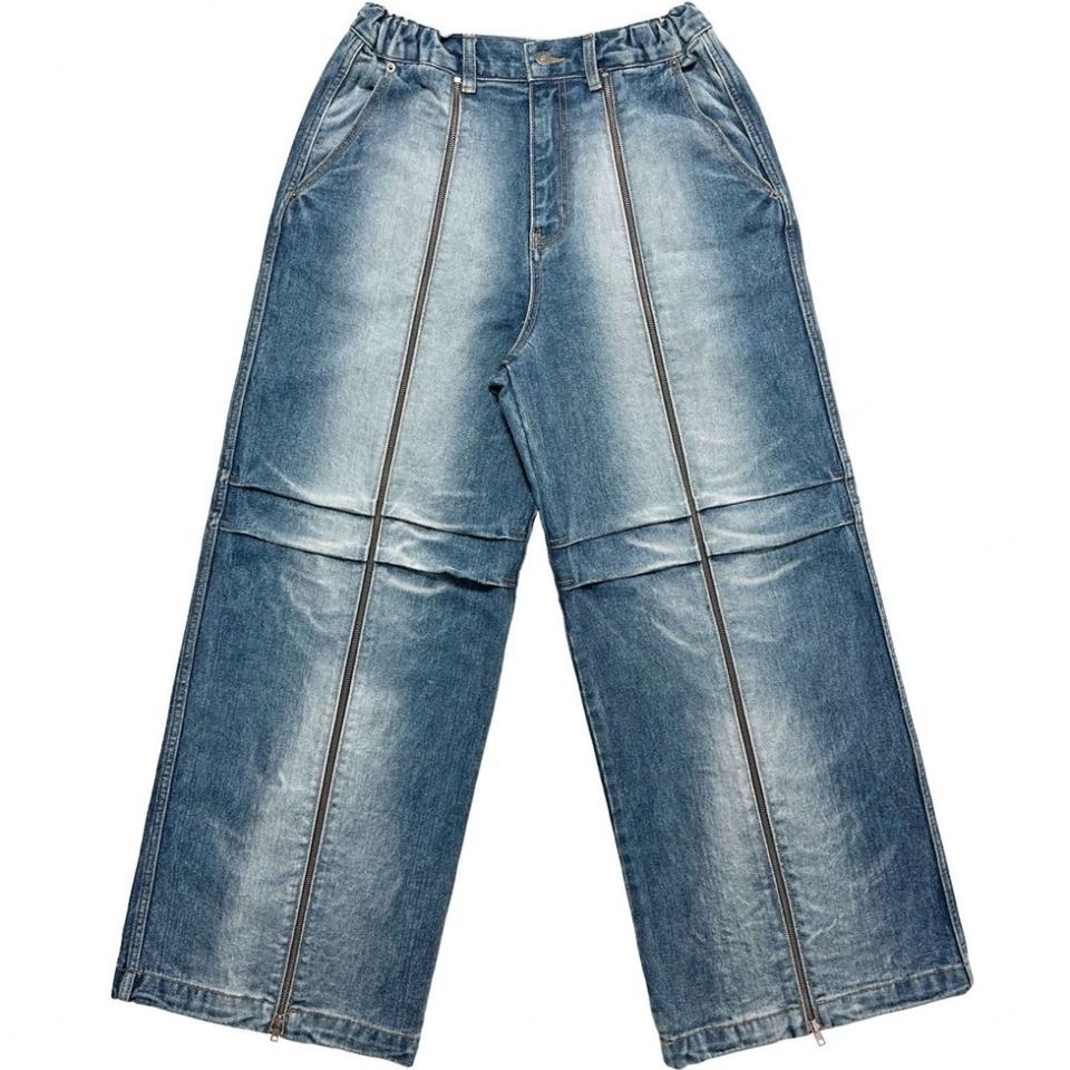 Shanlai กางเกงยีนส์ทรงหลวมมีซิปยาวสำหรับผู้ชายกางเกงโอเวอร์ไซส์ออกแบบได้ตามต้องการฤดูร้อน