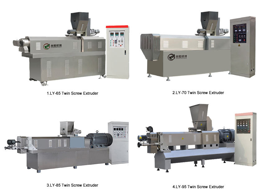 เครื่องอัดรีดแบบสกรูคู่ ซานตง หลินหยาง สำหรับทำขนมพัฟข้าวโพด สายการผลิตอาหารพัฟซีเรียล พร้อมเกียร์ เครื่องยนต์ ปั๊ม มอเตอร์ คุณภาพสูง