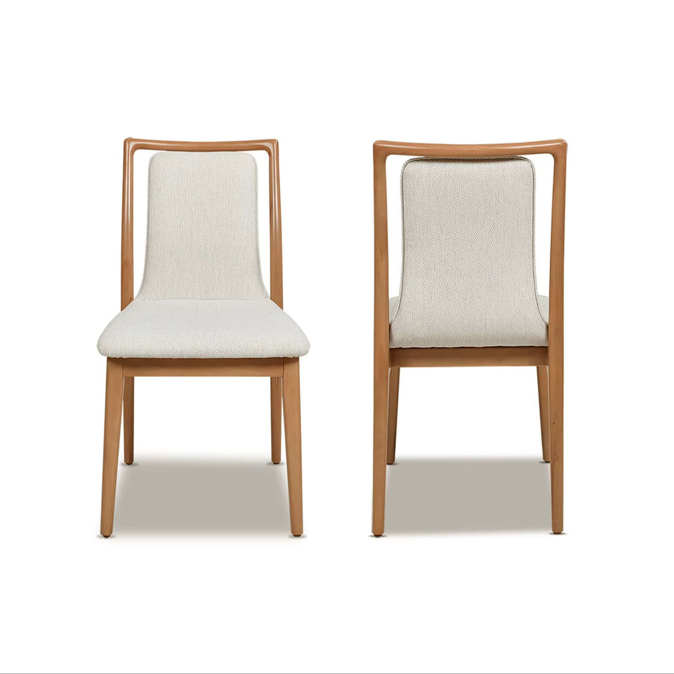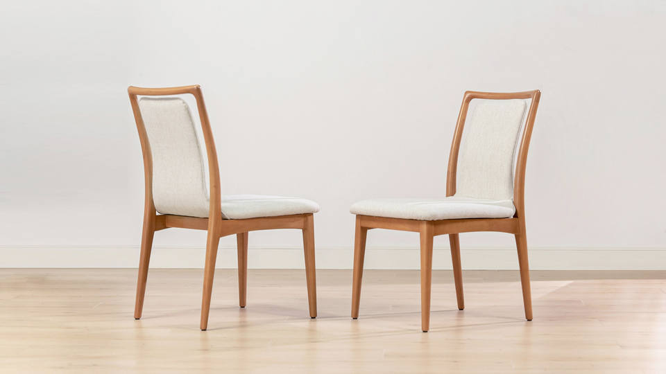 เก้าอี้ทานข้าวหุ้มเบาะ Shandy สีน้ำตาลอ่อนธรรมชาติ โครงไม้เนื้อแข็ง พร้อมเบาะวัสดุโอเลฟิน