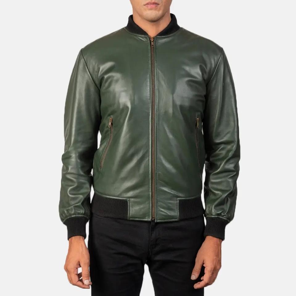 เสื้อแจ็กเก็ตบอมเบอร์หนังสไตล์ไฮสตรีทสีเขียวมีความทนทานมีคุณสมบัติกันลมและจำเป็นสำหรับกิจกรรมกลางแจ้ง