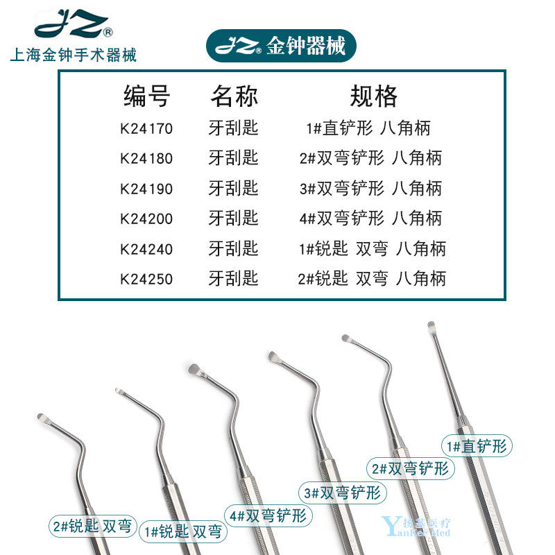 เครื่องมือผ่าตัดแบบใช้มือสำหรับขูดฟัน ยี่ห้อเซี่ยงไฮ้ จินจง รุ่นทั่วไป สีเงิน