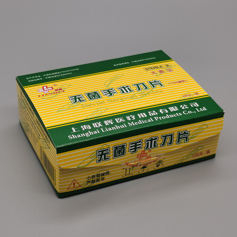 ใบมีดผ่าตัดปลอดเชื้อเซี่ยงไฮ้ เหลียนฮุ่ย บรรจุ 100 ชิ้นต่อกล่อง สำหรับใช้ทางทันตกรรมและเสริมความงาม บรรจุภัณฑ์แยกชิ้นแบบใช้ครั้งเดียว