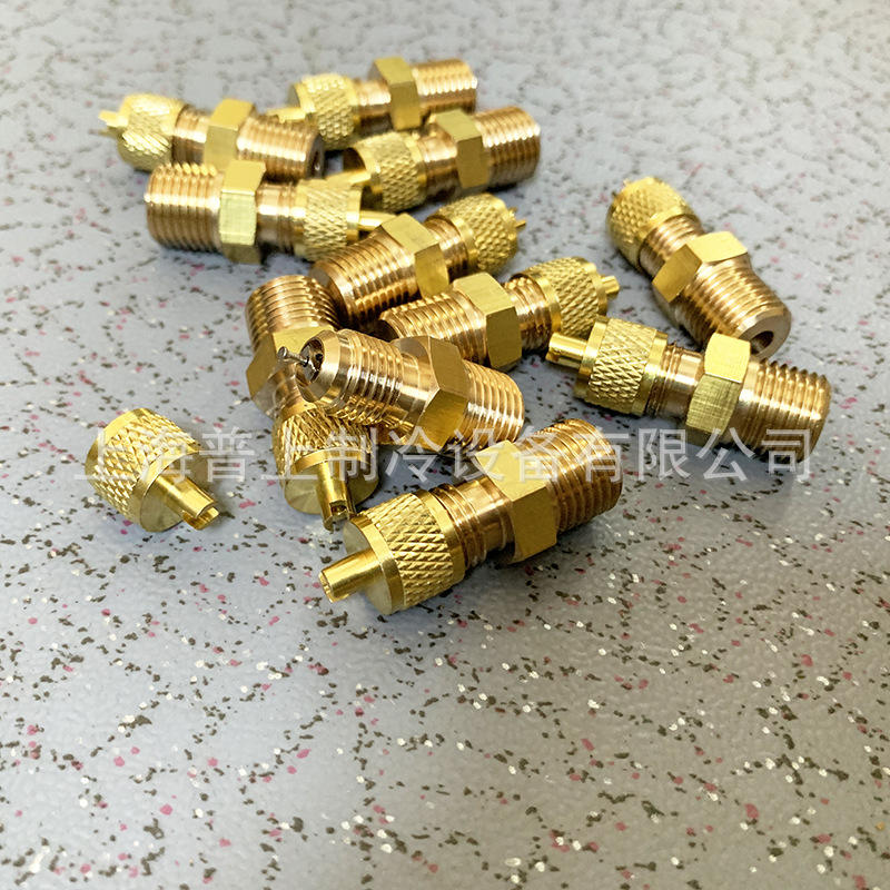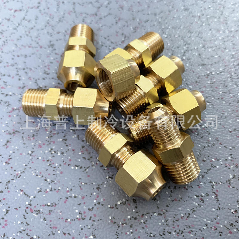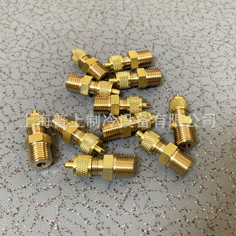วาล์วทำความเย็นเซี่ยงไฮ้ปูตง ข้อต่อทองเหลืองเกลียวนอกขนาด 1/4 นิ้ว NPT สำหรับระบบปรับอากาศคอมเพรสเซอร์
