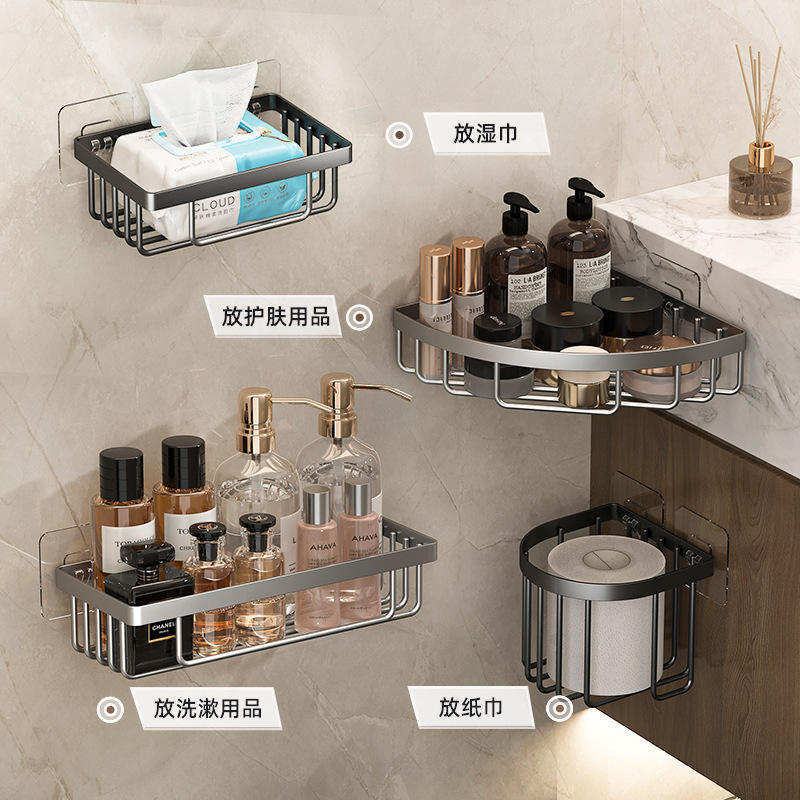 ชั้นวางของติดผนังห้องน้ำ Shangnaisi ชั้นวางมุมรูปสี่เหลี่ยมผืนผ้า ทนทาน ไม่ต้องเจาะ สำหรับอุปกรณ์ในห้องน้ำ