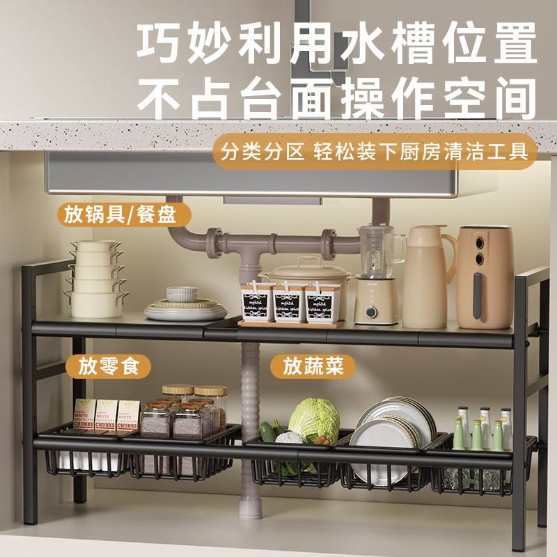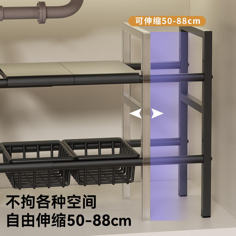 ชั้นวางอ่างล้างจานแบบปรับได้ Shangnaisi ชั้นเก็บของอเนกประสงค์สำหรับจัดระเบียบใต้ตู้ใต้อ่างล้างจาน ความลึก 8-11.9 นิ้ว