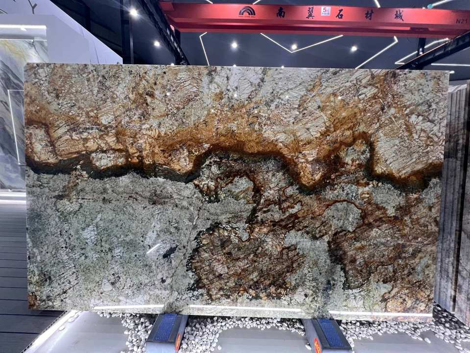 Shangri-La กระเบื้องหินอ่อนสีน้ำตาลสำหรับใช้ในร่มขัดสำหรับโรงแรมล็อบบี้วิลล่าตกแต่งโต๊ะบันได