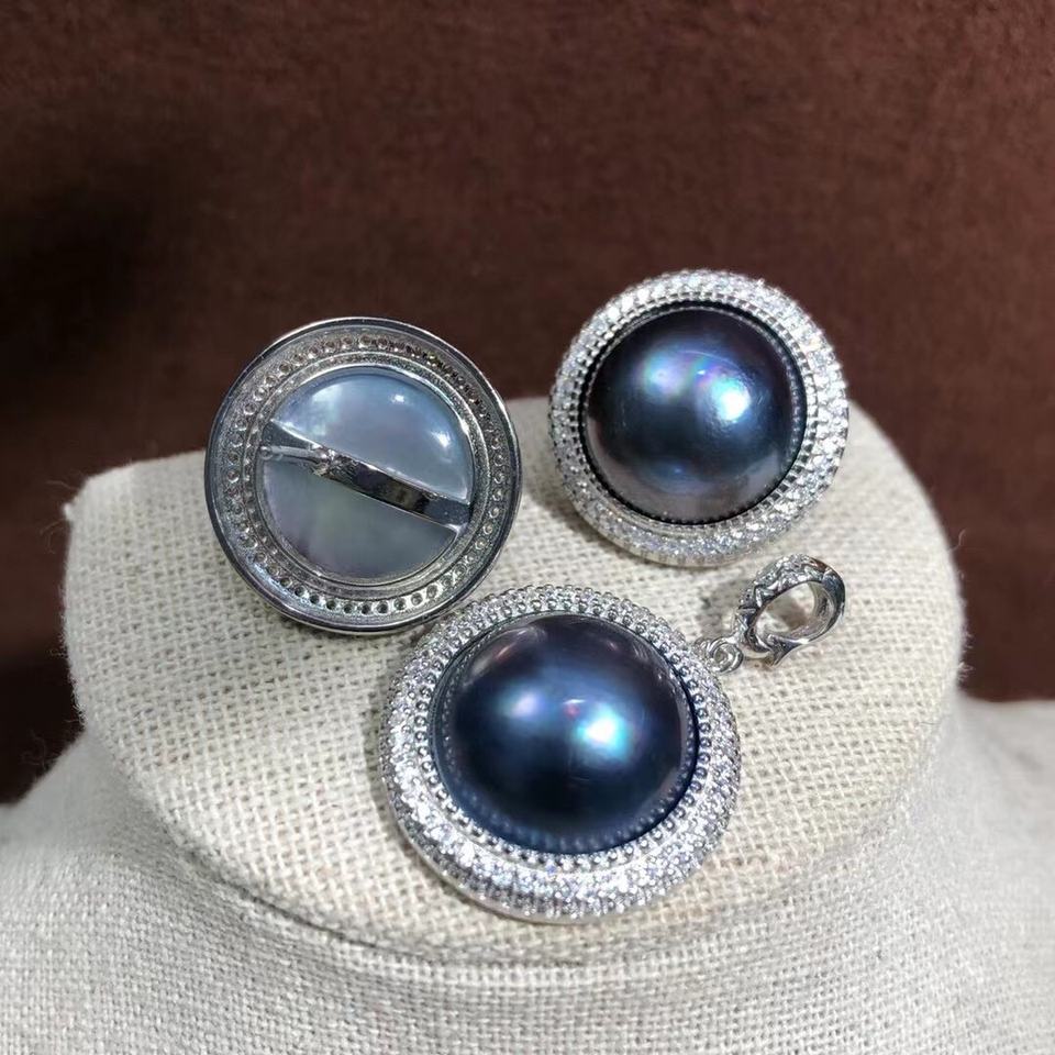 จี้มุกเมเบะทะเลสาบซานเซีย เงินแท้ 925 ประดับมุกกลมสีดำคุณภาพ AAA ทรงกลม ดีไซน์คลาสสิก เหมาะสำหรับทุกเพศทุกวัย สวมใส่ได้ทุกวัน