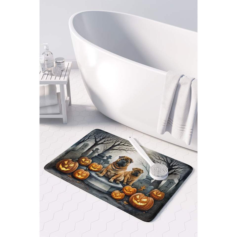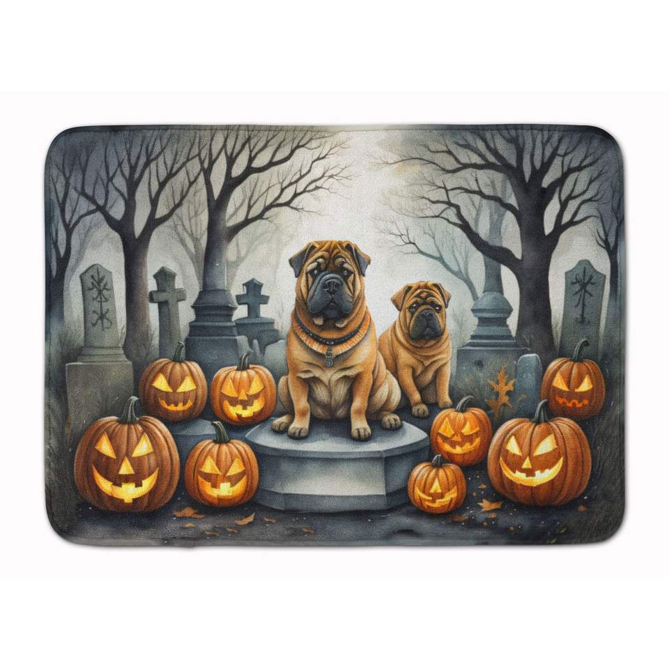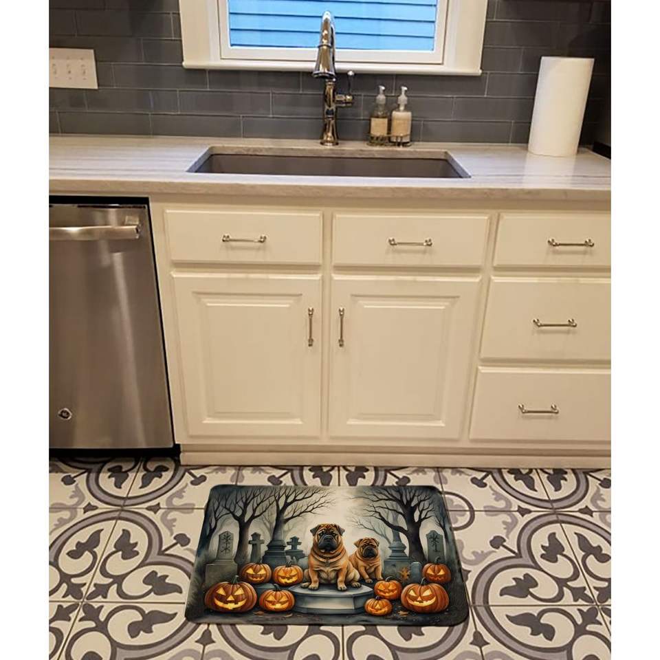 Shar Pei เสื่อในครัวโฟมเมมโมรีลายฮาโลวีนที่น่ากลัวซักได้ป้องกันความเหนื่อยล้าพรมปูในห้องครัวแบบนุ่มสบาย