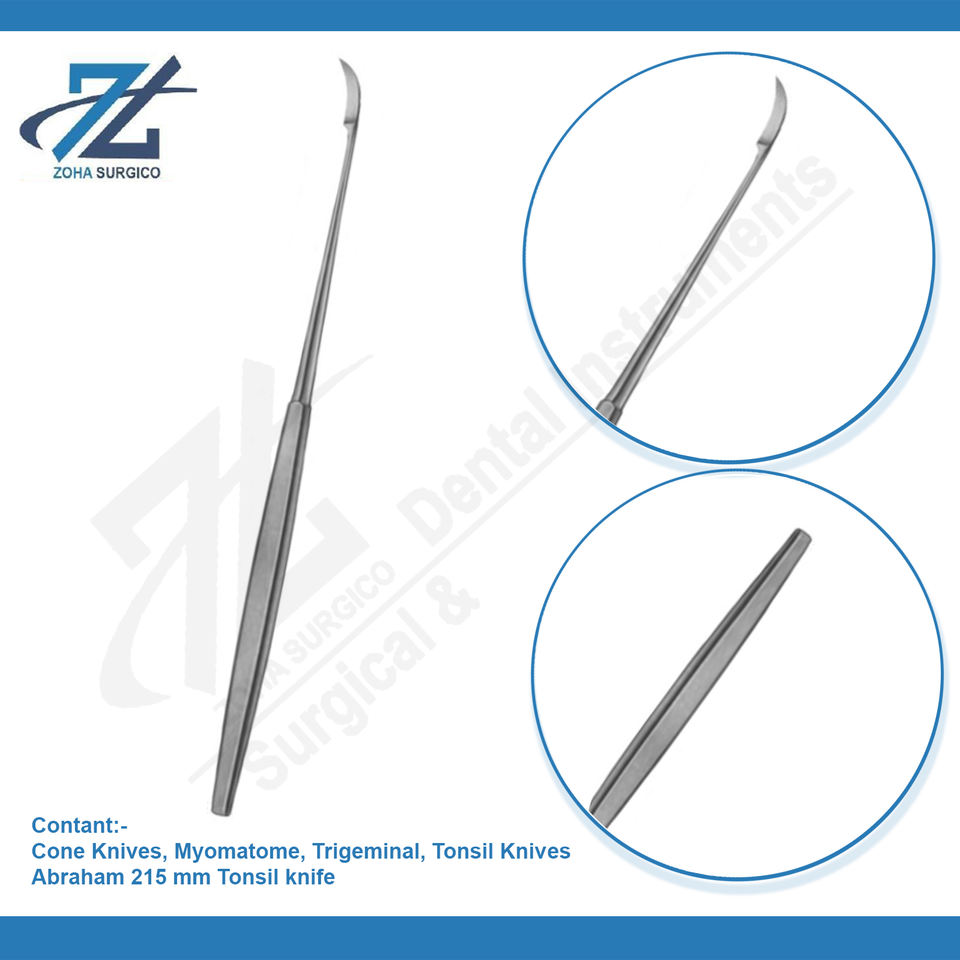 มีดผ่าตัดต่อมทอนซิล สแตนเลส ขนาด 215 มม. ยี่ห้อ Sharp สำหรับการผ่าตัดทางทันตกรรม ใช้สำหรับการผ่าตัดต่อมทอนซิล ยี่ห้อ Zoha Surgico