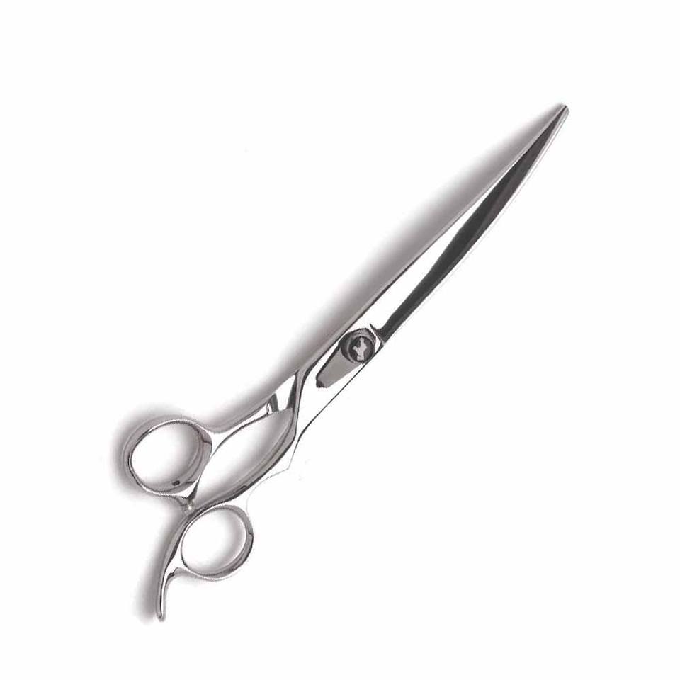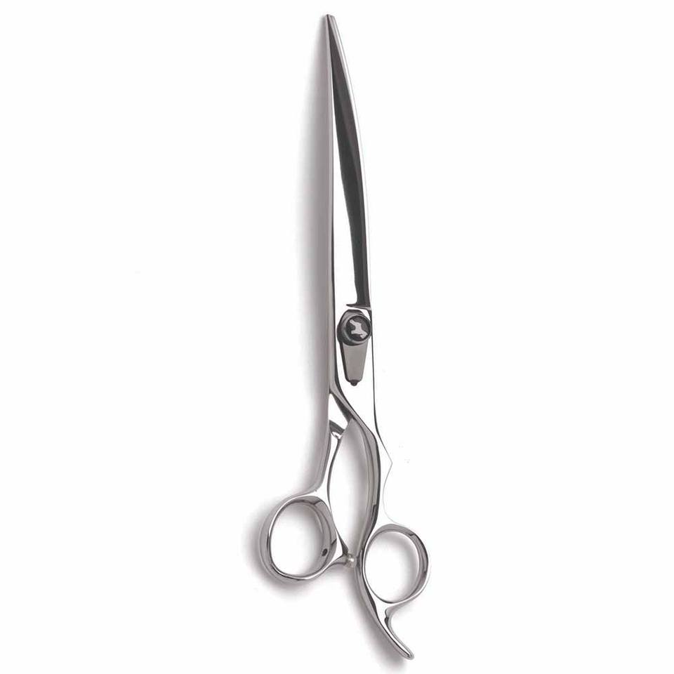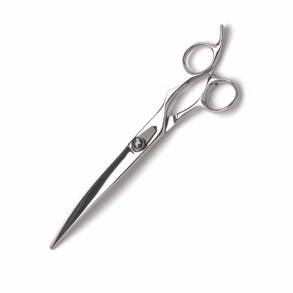 กรรไกรเล็มขนสัตว์เลี้ยงแบบโค้งคมกรรไกรตัดขนสัตว์เลี้ยงเหล็กคาร์บอนสูง8นิ้วพร้อมที่วางนิ้ว