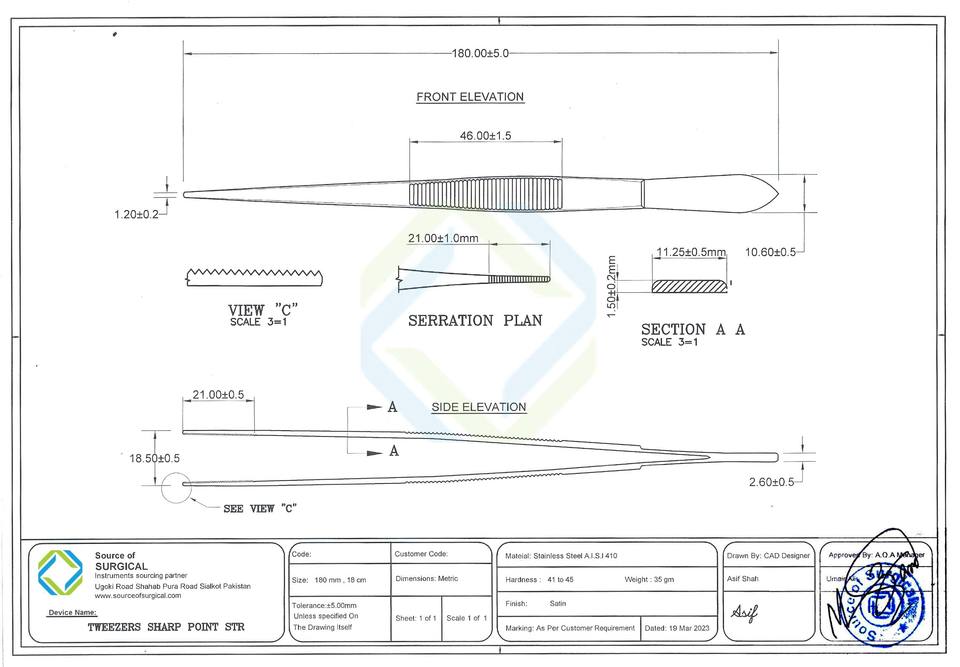 แหนบแหลมแหลมคมคุณภาพสูง ผลิตจากเหล็กกล้าไร้สนิมสำหรับการผ่าตัด ใช้พลังงานจากมือ สำหรับเครื่องมือผ่าตัด ได้รับมาตรฐาน CE
