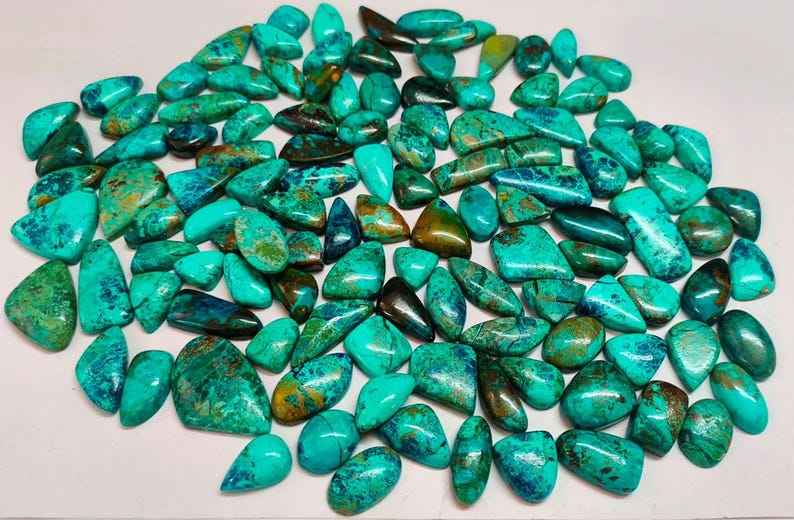 หินอัญมณี shattuckite Cabochon พลอยสีเขียวธรรมชาติที่ไม่ซ้ำกันทรงรีตัดหลวมอัญมณี shattuckite