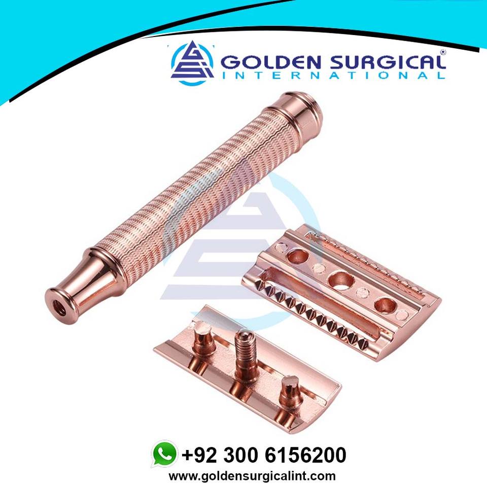 มีดโกนหนวดแบบดั้งเดิม รุ่น Zero Rose Gold สำหรับผู้ชาย ขายส่ง มีดโกนสองคม ด้ามจับทองเหลือง ใบมีดแบบคลาสสิก