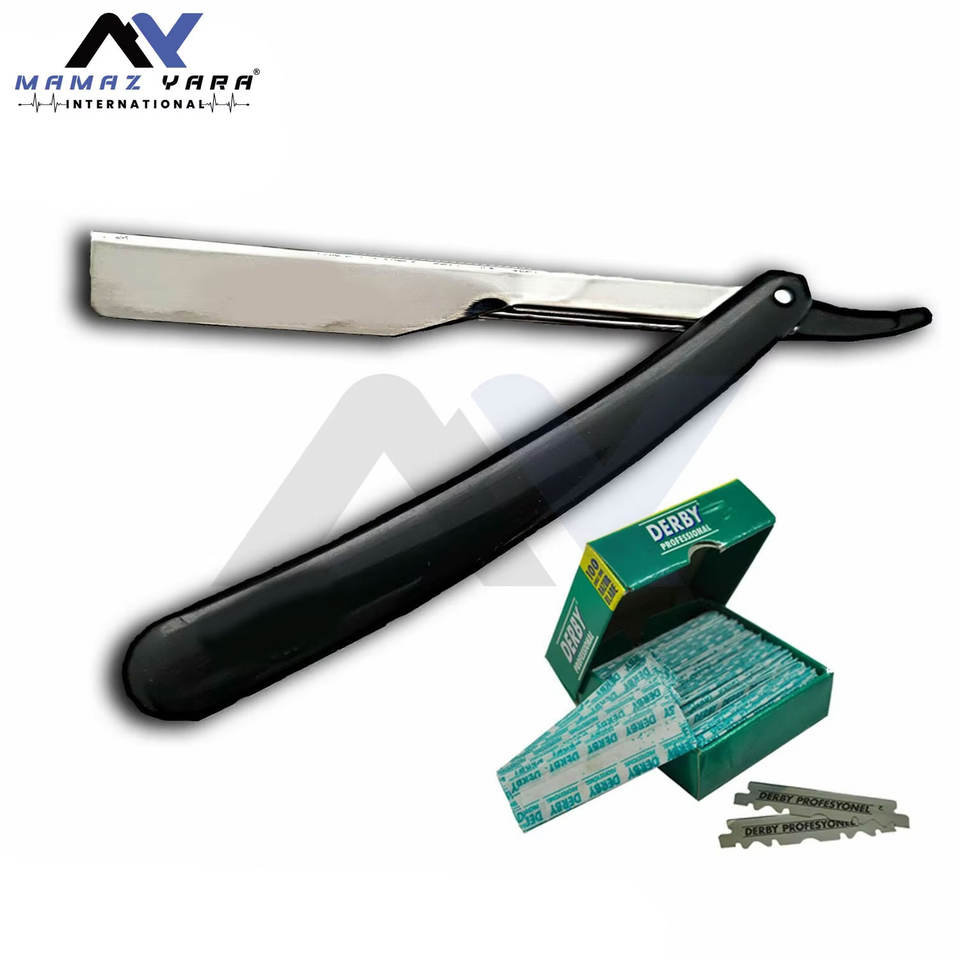 มีดโกนหนวดแบบตรง Shavette Barber สำหรับมืออาชีพ สีดำ พับได้ สำหรับช่างตัดผม ผู้ชาย ใช้สำหรับโกนหนวด ทำจากสแตนเลส