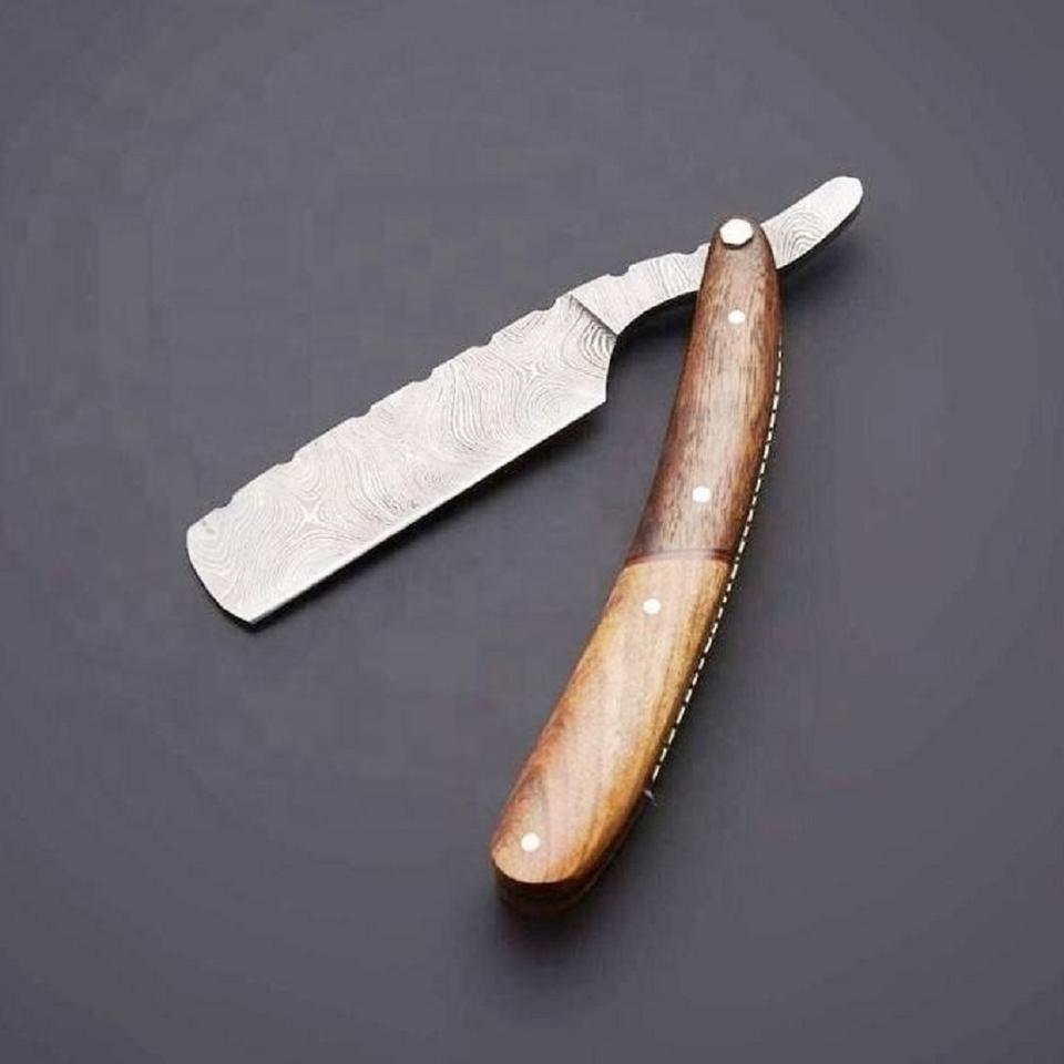 Professional High quality Damascus Steel Single-Blade Straight Cut Throat Shaving Razor Wooden handle Razor by Life Care Instr.