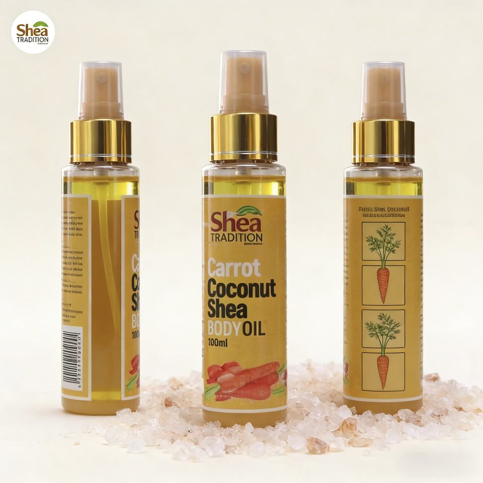 เชีย เทรดิชั่น ออร์แกนิค เชียบัตเตอร์ แครอท แอนด์ โคโคนัท บอดี้ ออยล์ 100 มล. ช่วยให้ผิวขาวกระจ่างใส เหมาะสำหรับทุกสภาพผิว