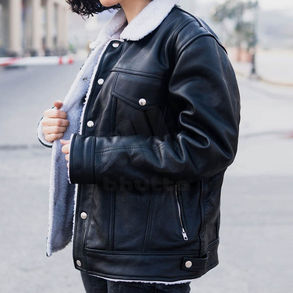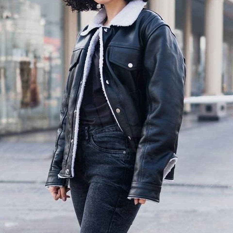 เสื้อแจ็คเก็ตหนังแกะขนแกะสำหรับผู้หญิง