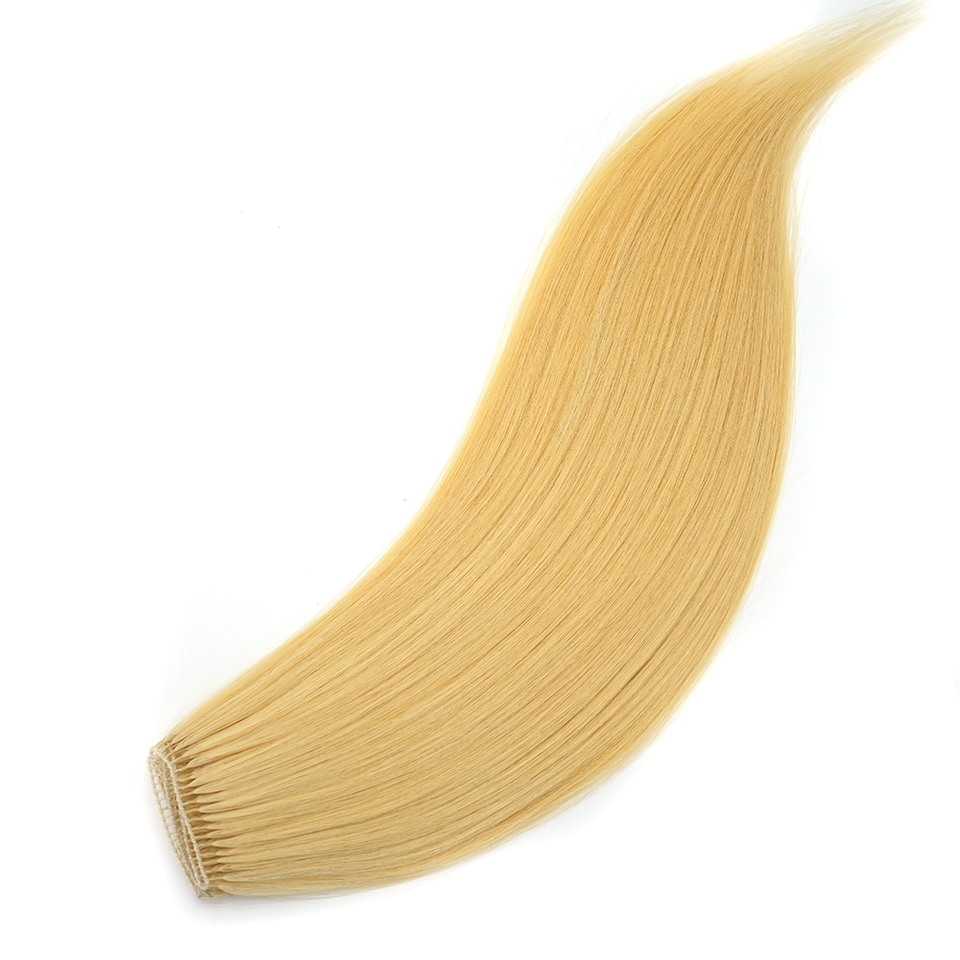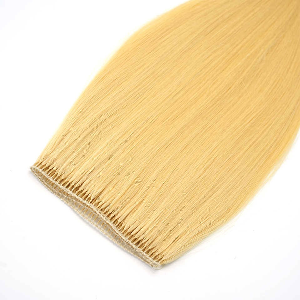 การยืดผมแบบไม่ทอที่มองไม่เห็นขน100% ต่อผมมนุษย์แท้เรมี่ผมขนนก100% จริง