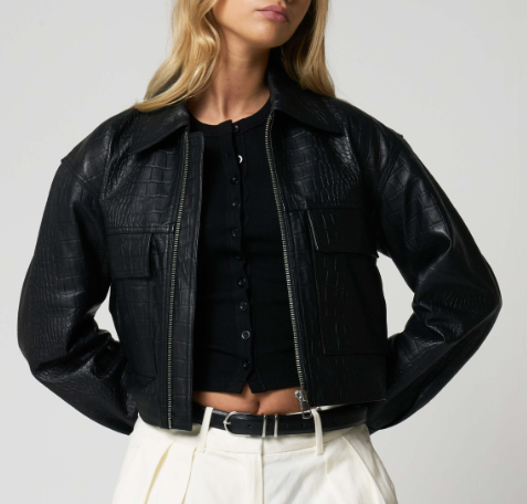 เสื้อผ้าสตรีทแวร์หนังแกะโครโกเสื้อแจ็คเก็ตไซส์ใหญ่