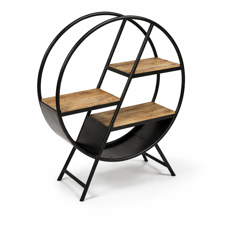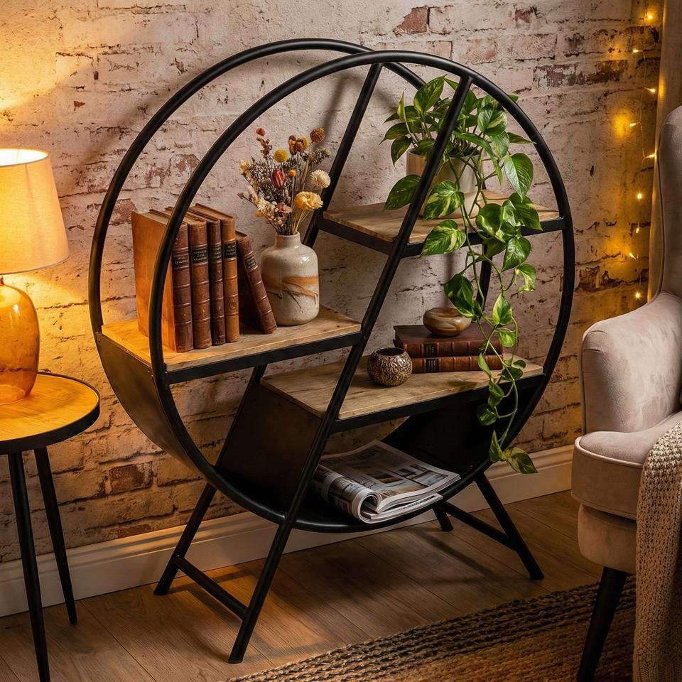 ชั้นวางหนังสือสไตล์โบราณ 300 ช่อง ทำจากเหล็กและไม้มะม่วง ตกแต่งแบบอินดัสเทรียลสีด้าน เฟอร์นิเจอร์สำหรับบ้าน ห้องนั่งเล่น ทางเข้าบ้าน โรงแรม อพาร์ทเมนท์ และวิลล่า
