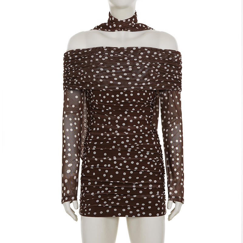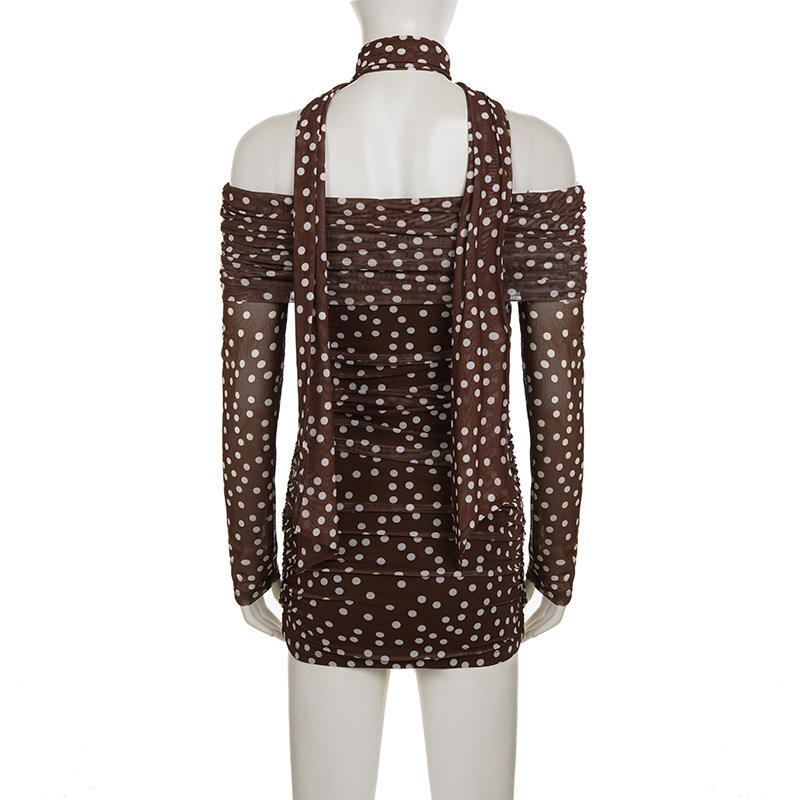 ชุดเดรสสั้นเปิดไหล่แขนยาวทรงสลิมฟิต