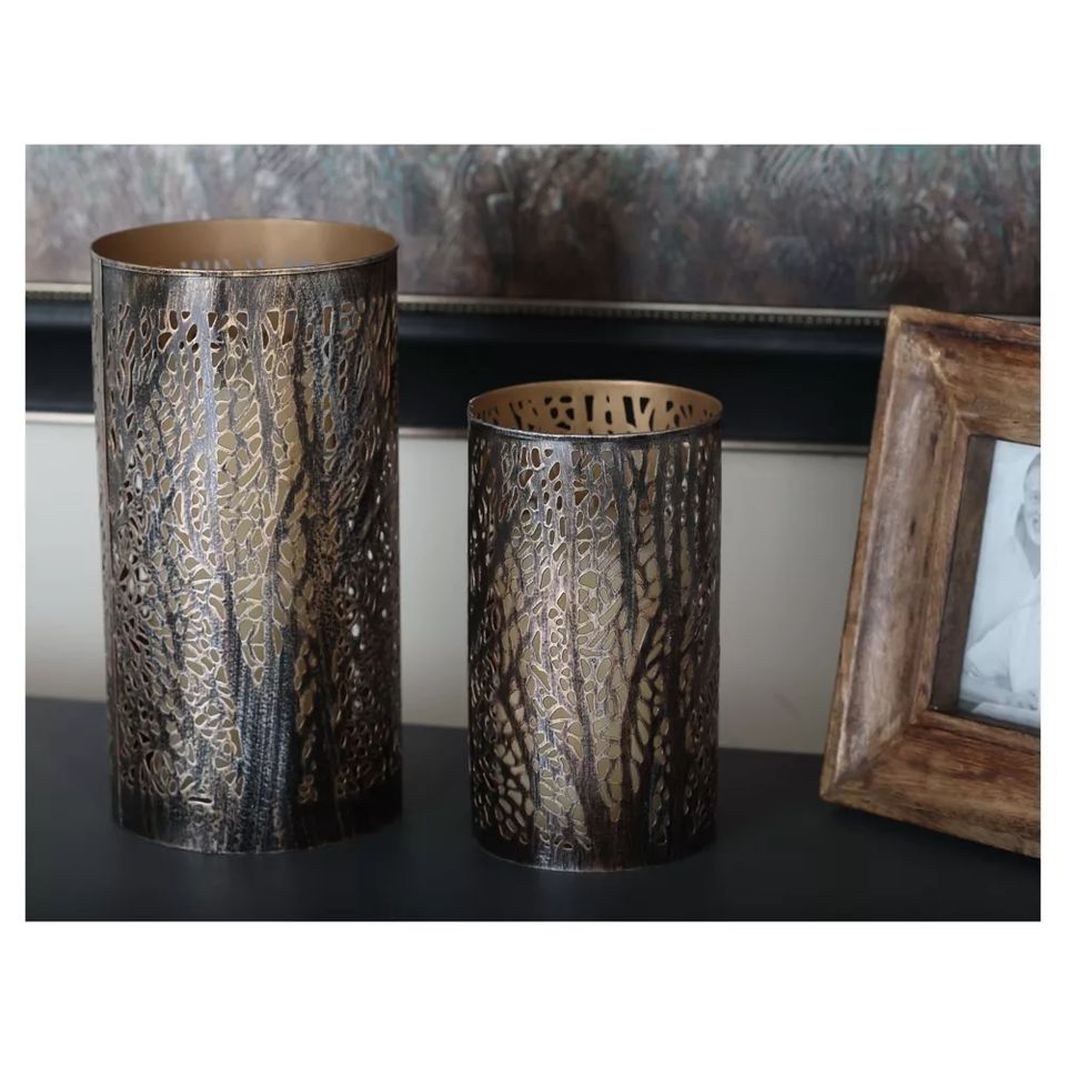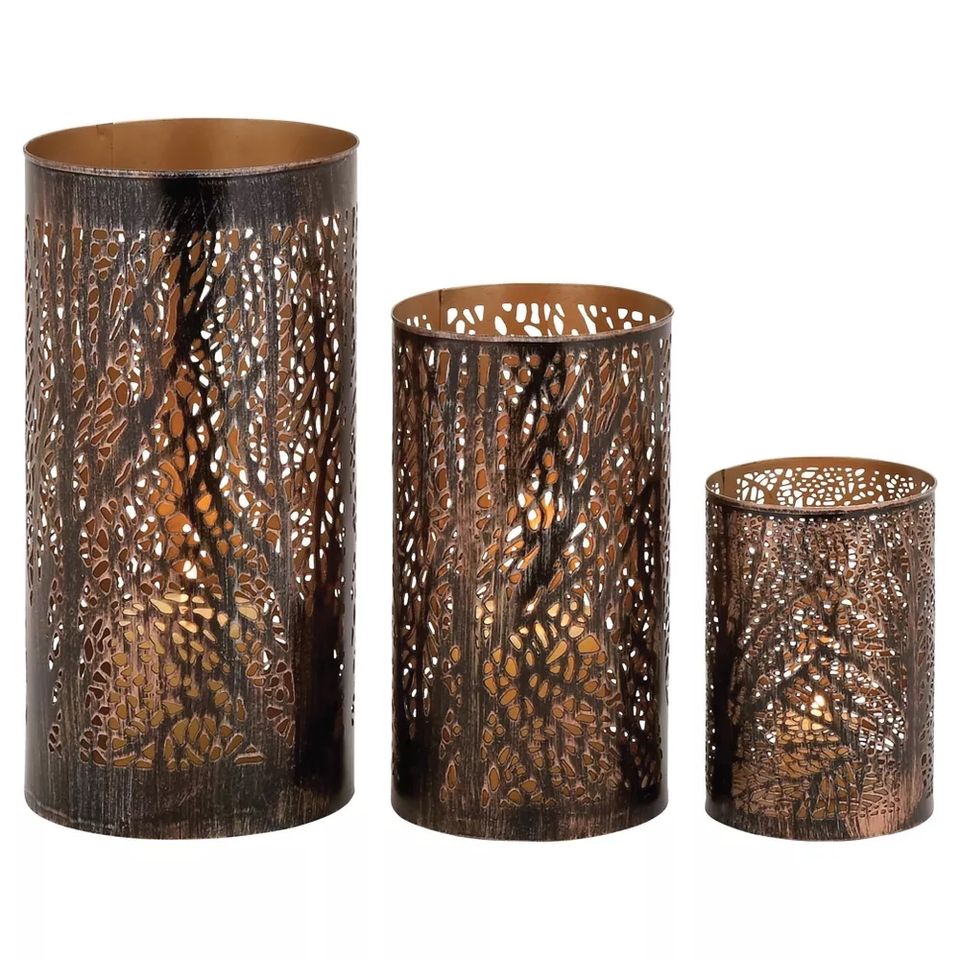 ขวดโหลโลหะมีกลิ่นหอมสำหรับตัดด้วยเลเซอร์แผ่นเหล็กชุดที่วางเทียน3ชิ้นสำหรับตกแต่งบ้าน