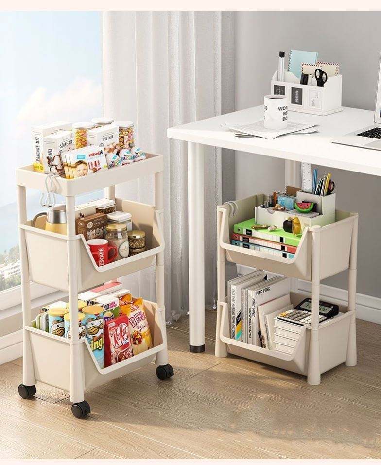 ชั้นวางของแบบเรียบง่ายสำหรับใช้ในบ้าน ตู้เก็บของหลายชั้นสำหรับเด็ก พร้อมล้อเลื่อน วางชิดผนัง