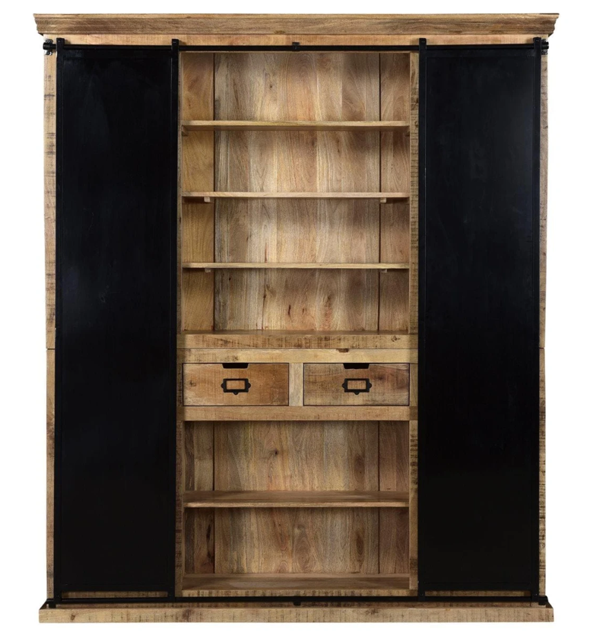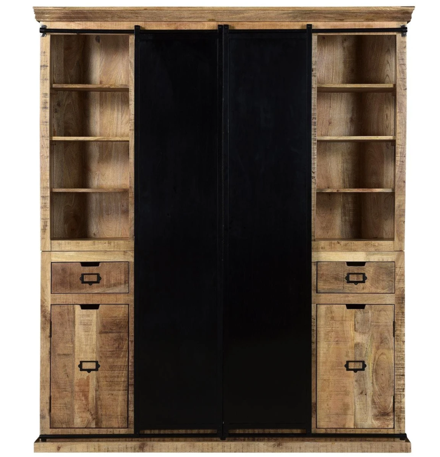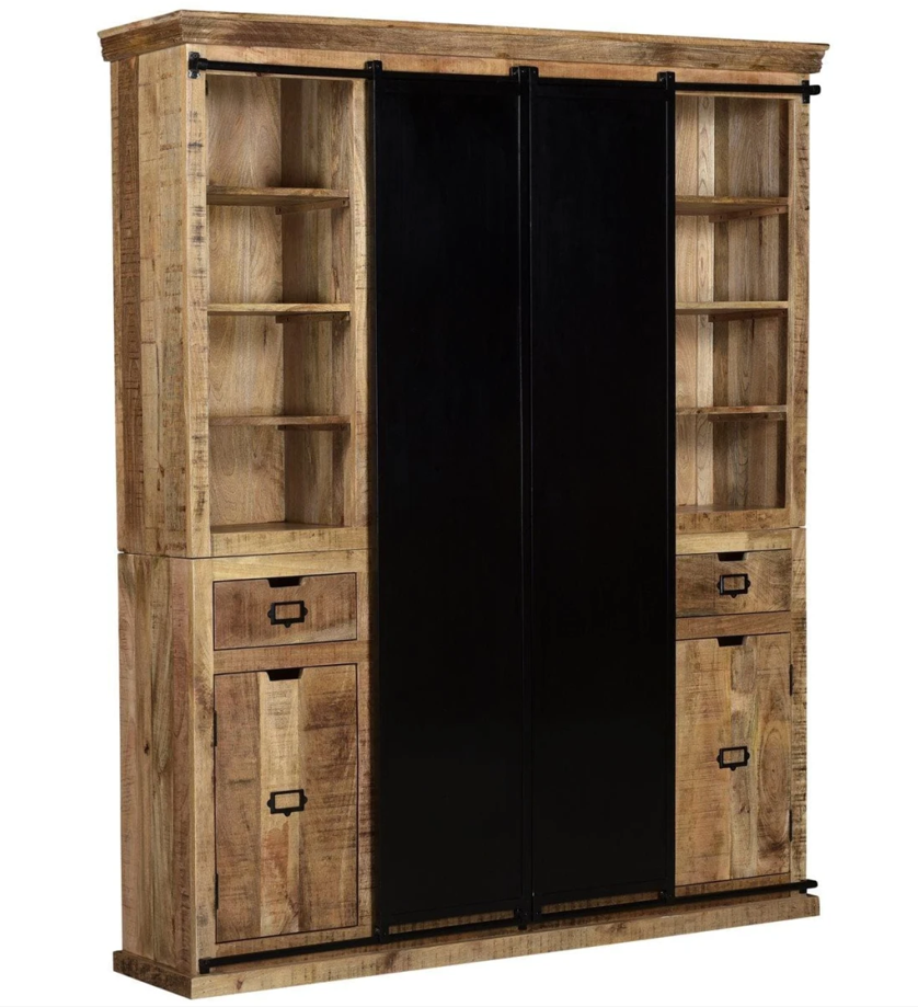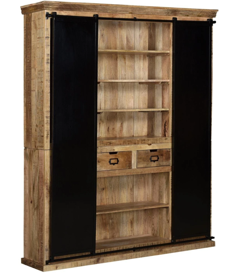 Shelving Unit with Sliding Doors 180cm Solid Wood Iron Industrial