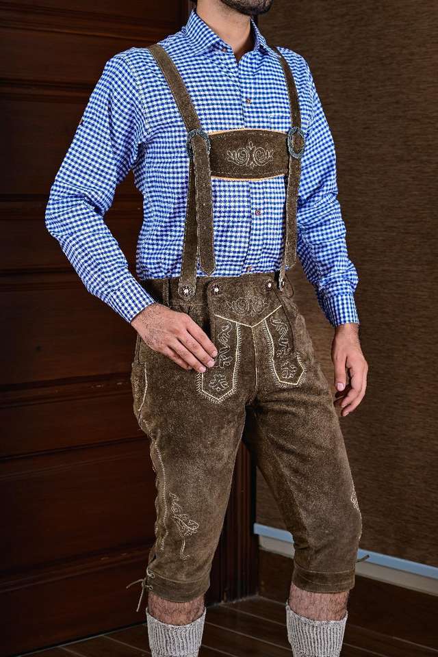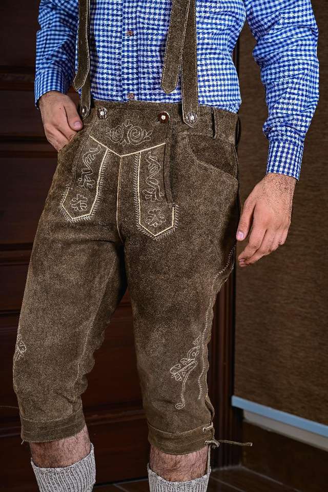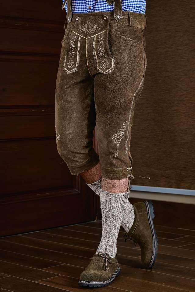 Shemax กางเกงขาสั้นผู้ชายสีเทาแบบพับเก็บได้, กางเกงขาสั้นสไตล์ทางการบาวาเรียน Oktoberfest Lederhosen