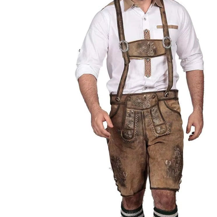 Shemax Trachten กางเกงขาสั้นผู้ชาย lederhosen สีเทา OEM แบบกำหนดเองใหม่บาวาเรีย Oktoberfest Lederhosen