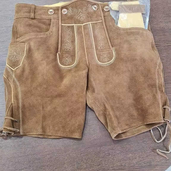 Shemax Trachten กางเกงขาสั้นผู้ชาย lederhosen สีเทา shaded OEM แบบใหม่บาวาเรีย Oktoberfest Lederhosen
