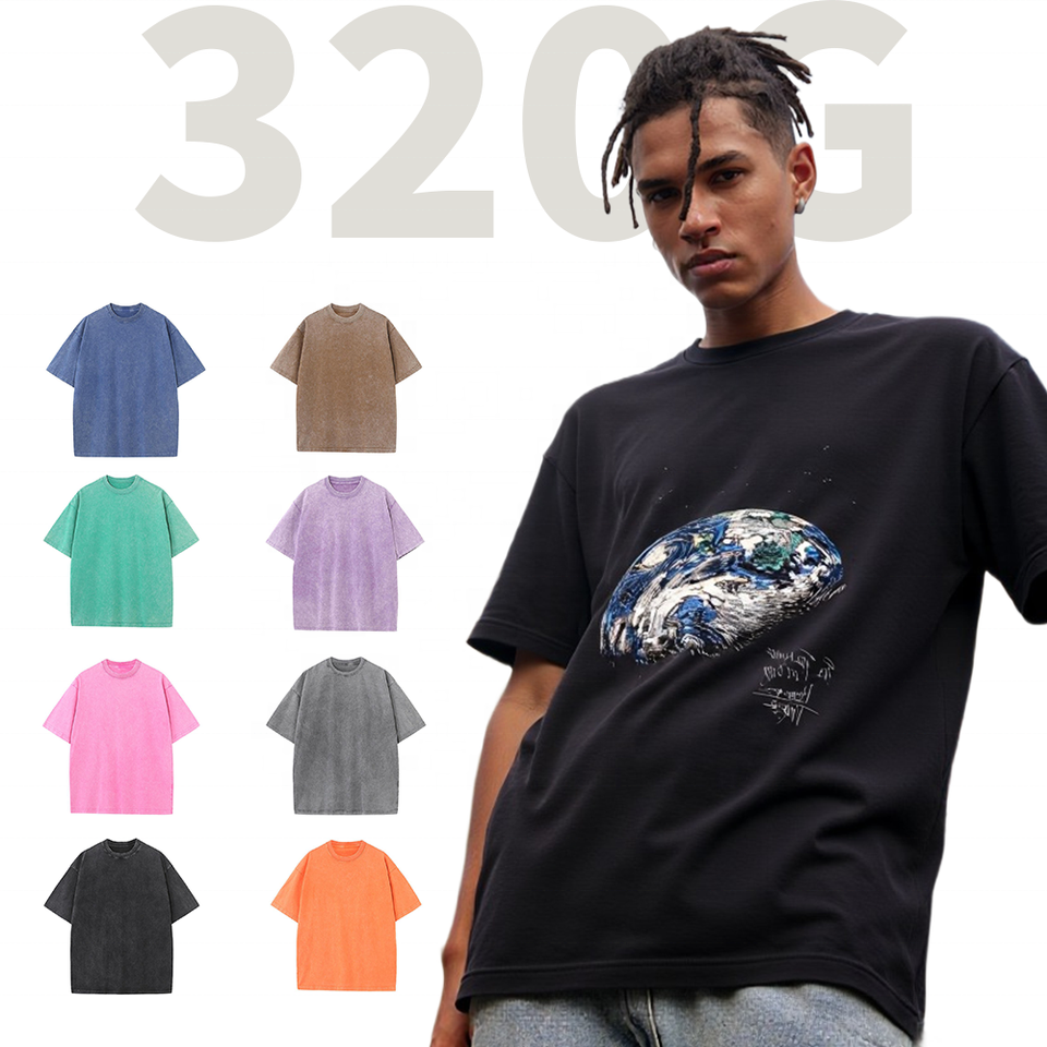 Shengshi เสื้อยืดทีมของ Shengshi วอชแบบย้อนยุคคอโอแบบสบายๆผ้าฝ้าย320กรัมแบบไม่หดสำหรับใส่โลโก้ออกแบบได้ตามต้องการขายส่งเป็นจำนวนมากสำหรับผู้ชาย