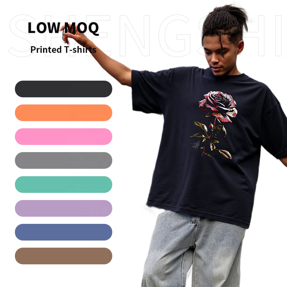 Shengshi เสื้อยืดวินเทจใช้ได้ทั้งชายและหญิงเสื้อล้างกรดคอกลม320g งานย้อนยุคนุ่มกำหนดเองโลโก้เสื้อยืดลำลองจำนวนมากสำหรับทีม