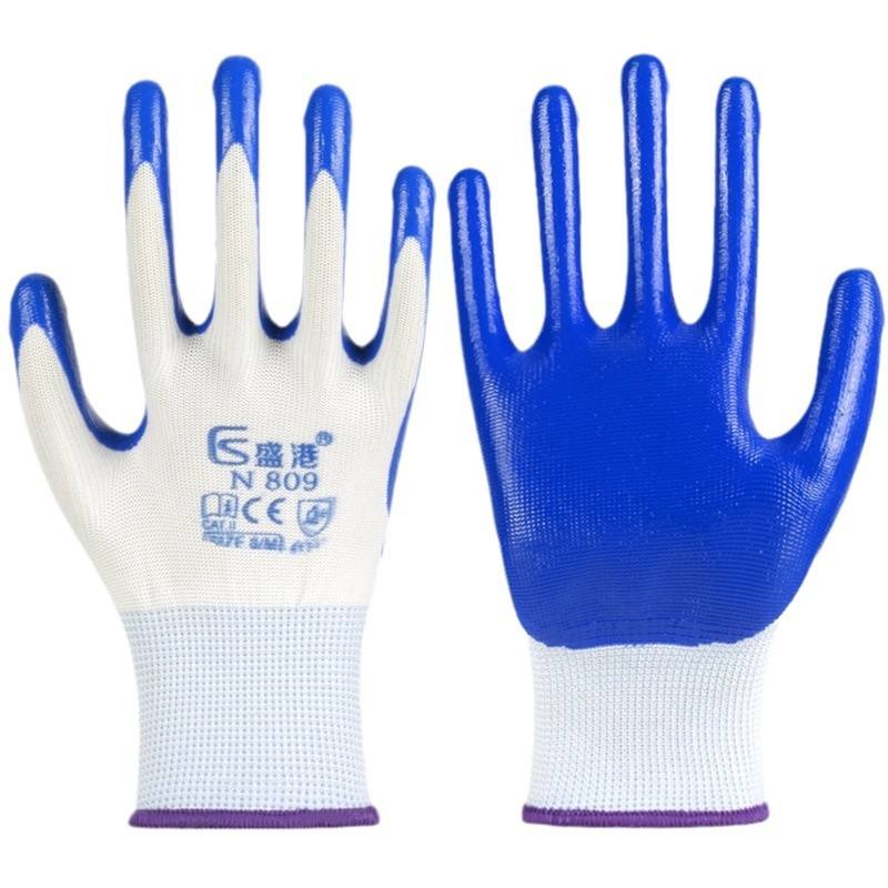 ถุงมือเซฟตี้ไนไตรล์ Shengang N809 แบบหนา ทนทานต่อการเสียดสี กันลื่น ทนน้ำมัน ใช้ในอุตสาหกรรมก่อสร้าง