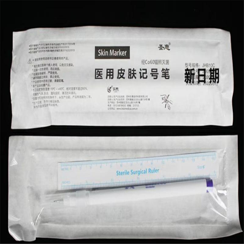 ปากกาเขียนผิวหนัง Shenghui รุ่น M4810C พร้อมไม้บรรทัด ใช้สำหรับผ่าตัด ปลอดเชื้อ ได้รับการรับรองมาตรฐาน CE สีขาว ใช้ครั้งเดียว อุปกรณ์การแพทย์