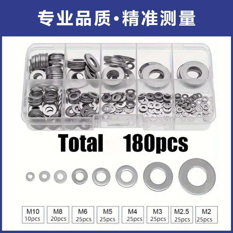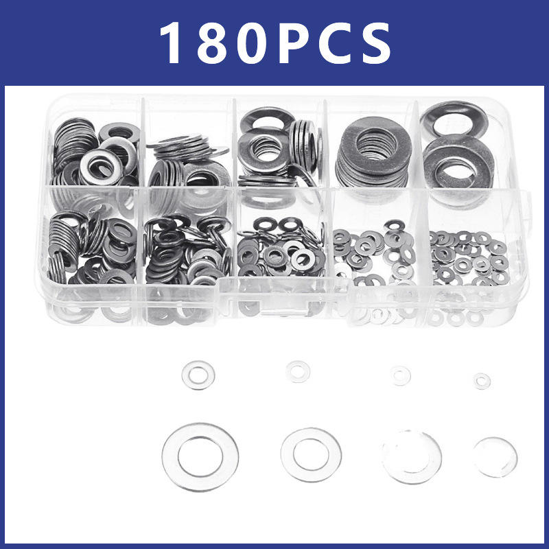 แหวนรองเหล็ก Shengjing ขนาด M2 ถึง M10 เกรด DIN93 A จำนวน 180 ชิ้น สำหรับประกอบเครื่องจักรกล