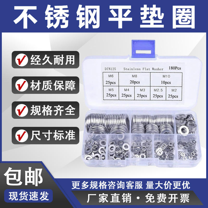 Shengjing ชุดเครื่องซักผ้าสแตนเลสแบน M2 M2.5 M3 M4 M5 M6 M8 M10มาตรฐาน DIN 180ชิ้น