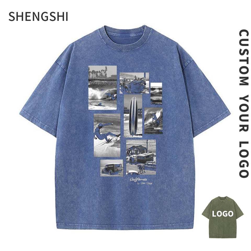 Shengshi เสื้อยืดสำหรับผู้ใหญ่เสื้อล้างกรดคอกลมขนาด320กรัมงานย้อนยุคแบบนุ่มกำหนดเองพร้อมโลโก้เสื้อยืดจำนวนมากสำหรับทีม