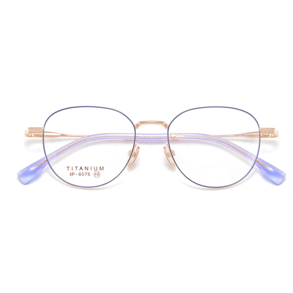 กรอบแว่นตาไทเทเนียมแท้จากเซินเจิ้น ทรงวงรี ดีไซน์ย้อนยุค น้ำหนักเบา สำหรับผู้ใหญ่ทั้งชายและหญิง ดีไซน์สองสี รุ่น 6076