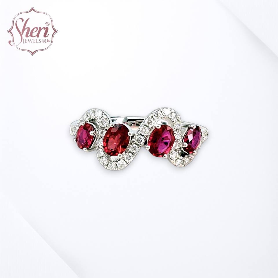 แหวนเพชรพลอยรูปไข่สีแดงทับทิมจาก [เชอรี จิวเวลส์] ทองคำขาวแท้ 18K ประดับด้วยทับทิมรูปไข่ธรรมชาติและเพชรทรงกลมเจียระไนแบบเหลี่ยมสำหรับผู้หญิง