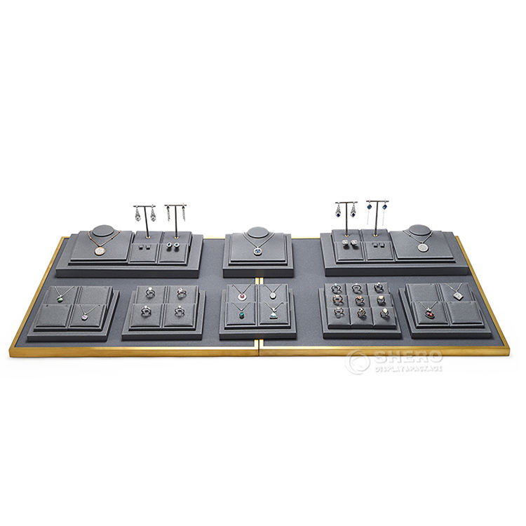 Shero สีดำไมโครไฟเบอร์เครื่องประดับต่างหูยืนแสดงแหวนสร้อยคอสีเทาแสดงเครื่องประดับสำหรับเคาน์เตอร์