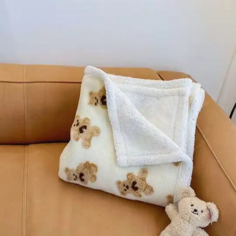 ผ้าห่มขนแกะผ้าโพลีเอสเตอร์ลายหมีสำหรับฤดูหนาว