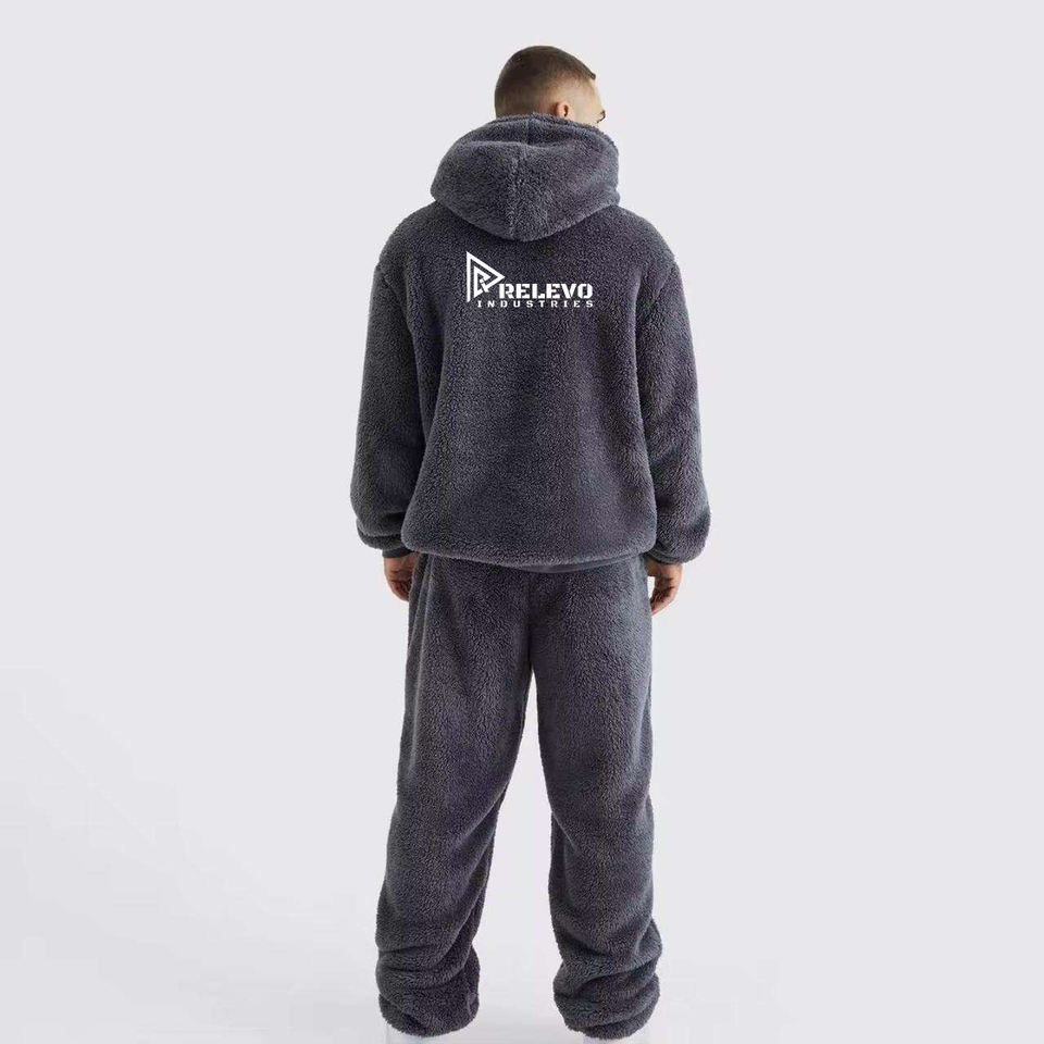 ชุดวอร์มผู้ชายผ้าเชอร์ปาขนแกะ สีเทา ผ้าฝ้าย 100% ทรงหลวม ชุดวอร์มผู้ชายใส่สบาย มีหลายสีให้เลือก